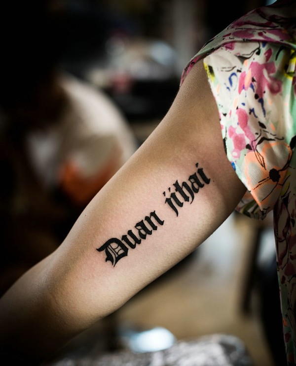 女生手臂内侧简单英文单词纹身刺青