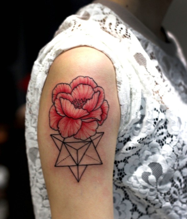几何图形与花朵一起的手臂纹身刺青
