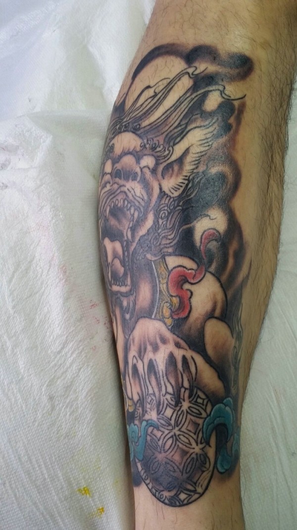 花腿纹身--一组大黑腿纹身图案作品欣赏