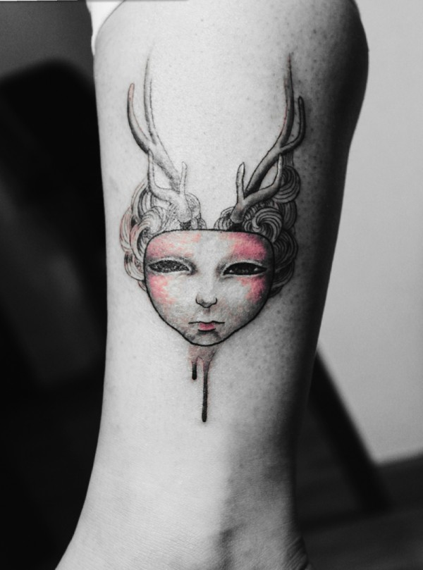 人头鹿角的怪异图案纹身