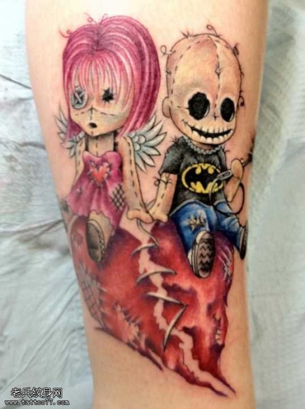 腿部的鬼娃娃纹身图案