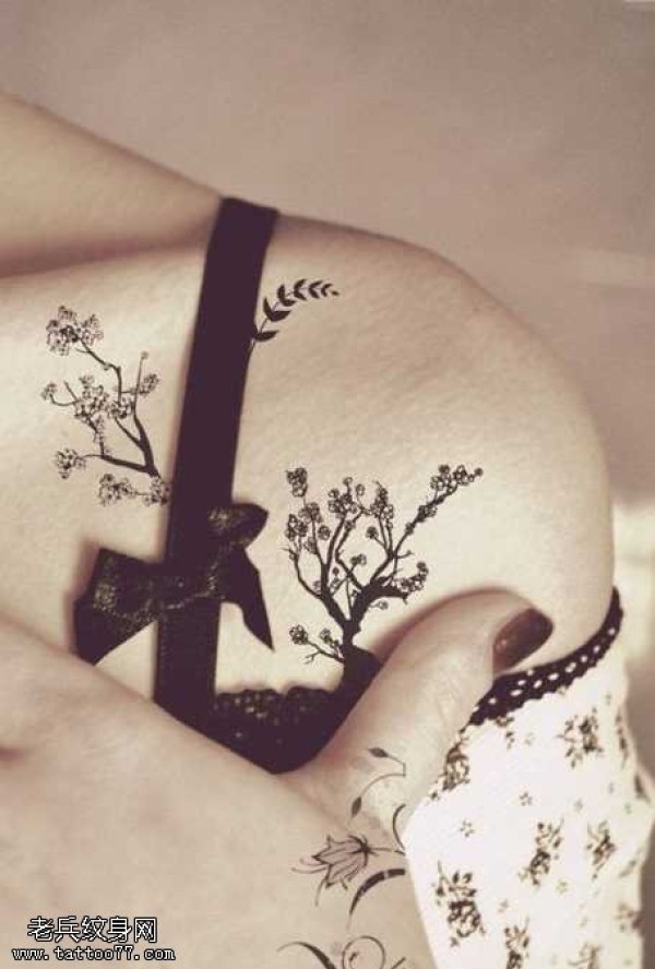 女生肩花纹身_15张女性双肩对称的肩花纹身图案作品图片