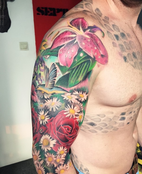 手臂莲花蛇纹身图案_臂部纹身图案大全_纹身图吧