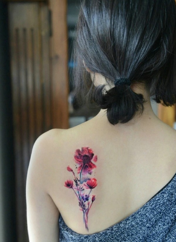 后肩唯美花藤英文图案图片_植物纹身图案大全_纹身图吧