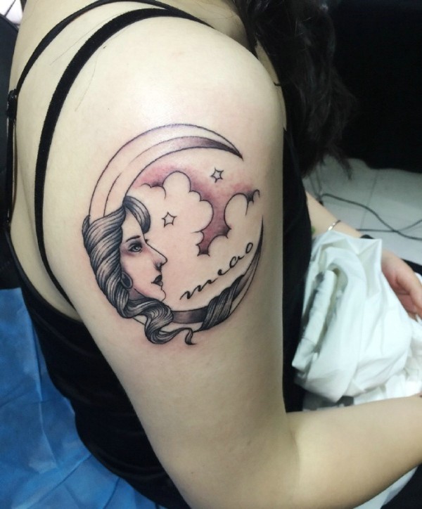 大臂个性独特的月亮女神图腾纹身刺青