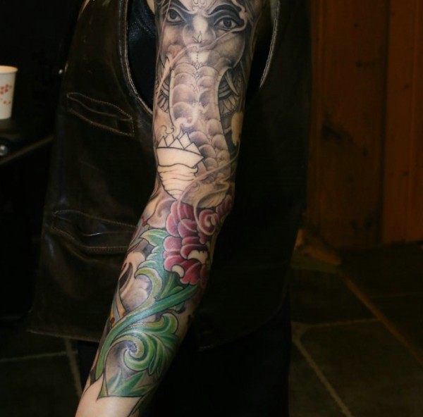 遮盖整个手臂的彩色象纹身刺青