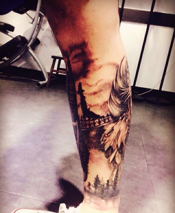 花腿纹身--一组大黑腿纹身图案作品欣赏