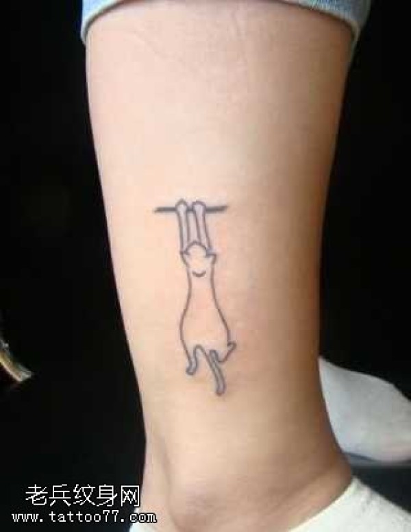 腿部可爱的猫咪纹身图案