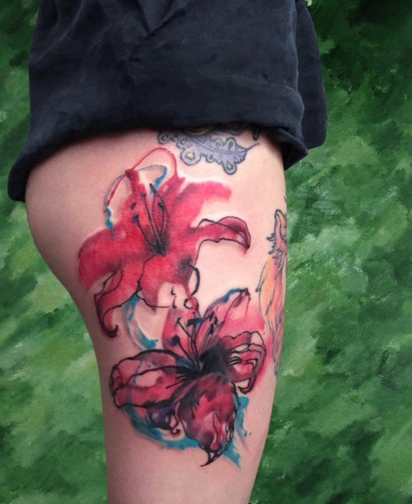 清新花朵腿部纹身图案图片_植物纹身图案大全_纹身图吧