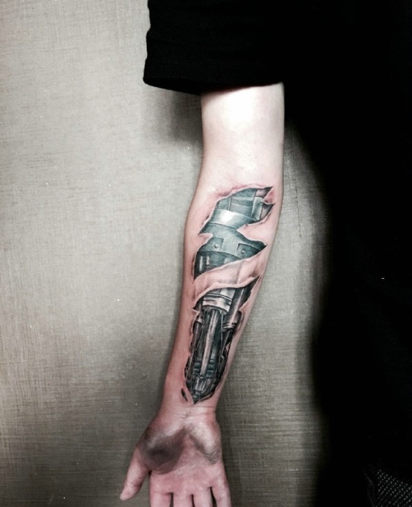 手臂狂野十足的3d机械纹身图案