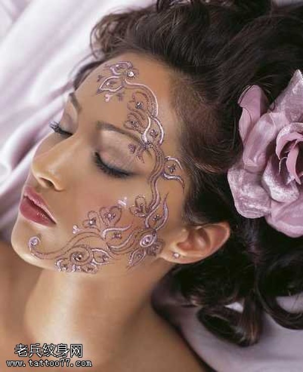 面部个性纹身花体英文字脸部传统风格纹身图案