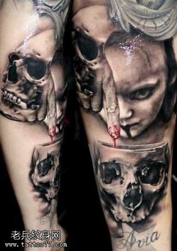 个性手臂悲伤的骷髅纹身图案图案图片_骷髅纹身图案大全_纹身图吧