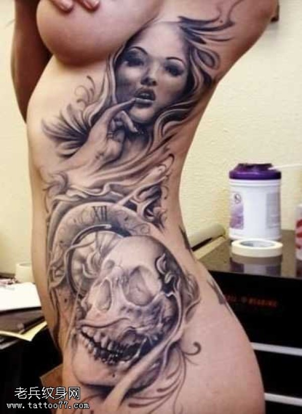侧腰女骷髅刺青图案图片_骷髅纹身图案大全_纹身图吧