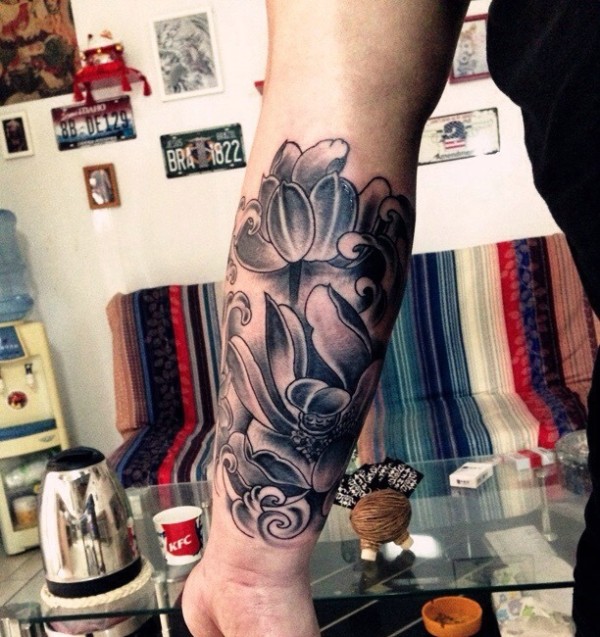 手臂莲花蛇纹身图案_臂部纹身图案大全_纹身图吧