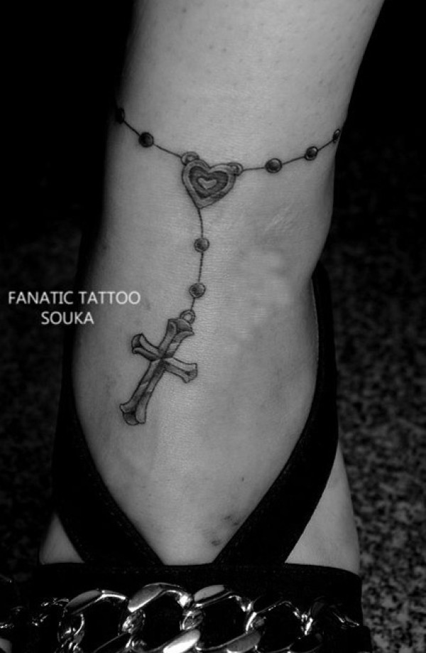 女士脚踝位置脚链十字架纹身