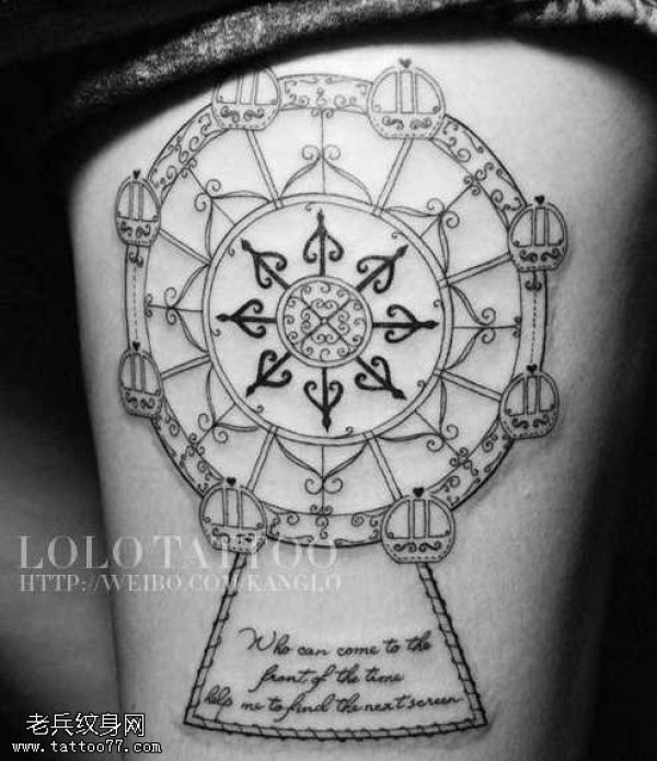 腿部摩天轮纹身图案