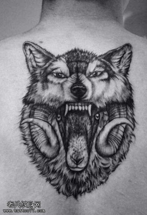 背部狼头纹身图案