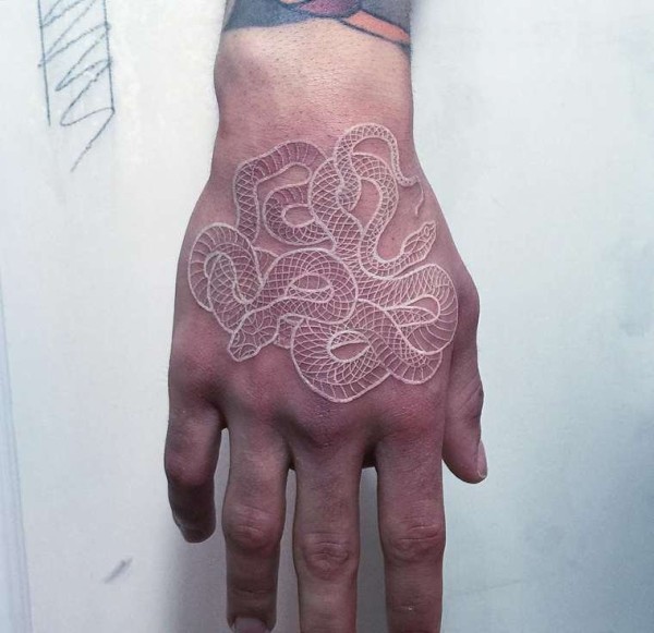 缠绕在一起的黑白色蛇纹身