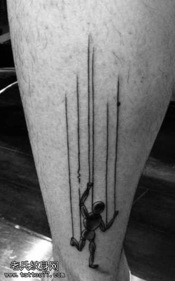 腿部潮流经典的木偶纹身图案