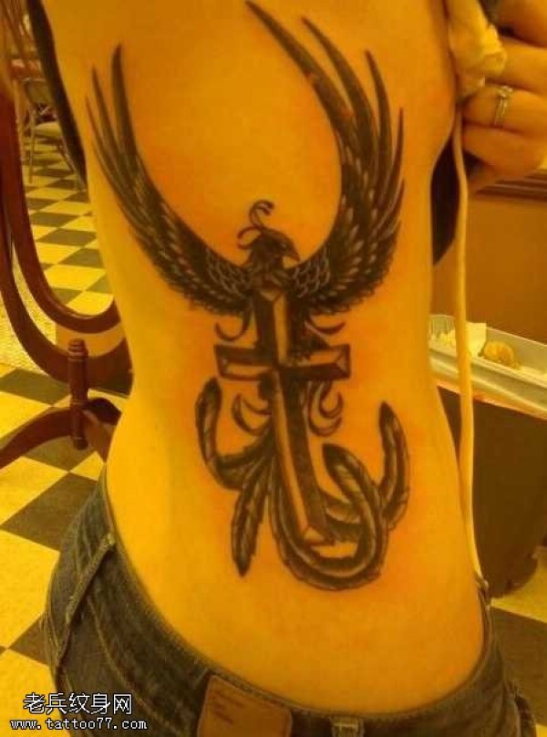 分享一款腰部时尚性感的蝶恋花纹身图案_腰部纹身图案大全_纹身图吧