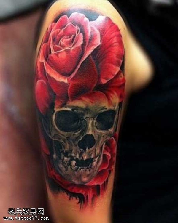 玫瑰和骷髅纹身图案