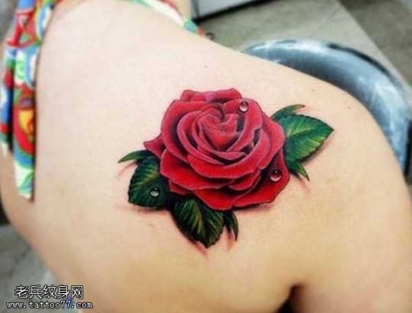 女生肩花纹身_15张女性双肩对称的肩花纹身图案作品图片