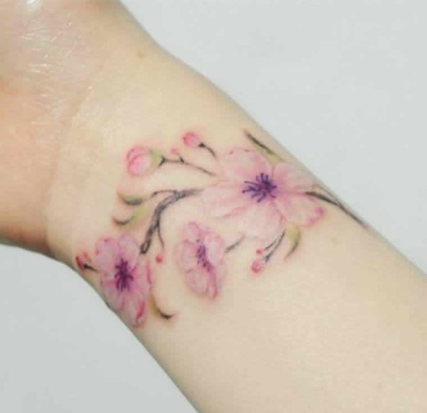 清新小桃花脚踝纹身_脚部纹身图案大全_纹身图吧