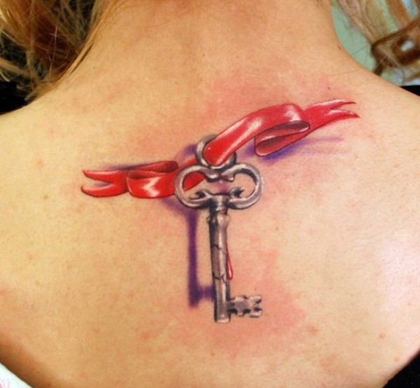 丝带钥匙3D纹身图案