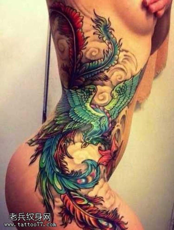 分享一款腰部时尚性感的蝶恋花纹身图案_腰部纹身图案大全_纹身图吧