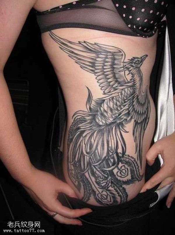 分享一款腰部时尚性感的蝶恋花纹身图案_腰部纹身图案大全_纹身图吧