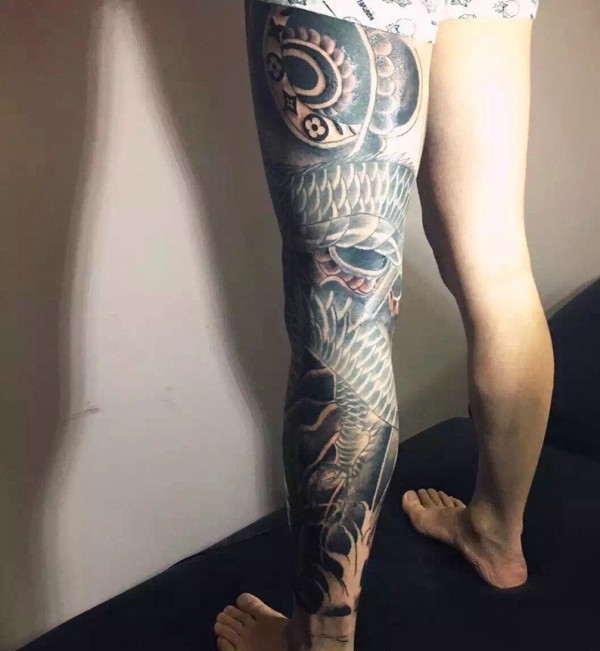 腿部鳌鱼纹身图案_腿部纹身图案大全_纹身图吧