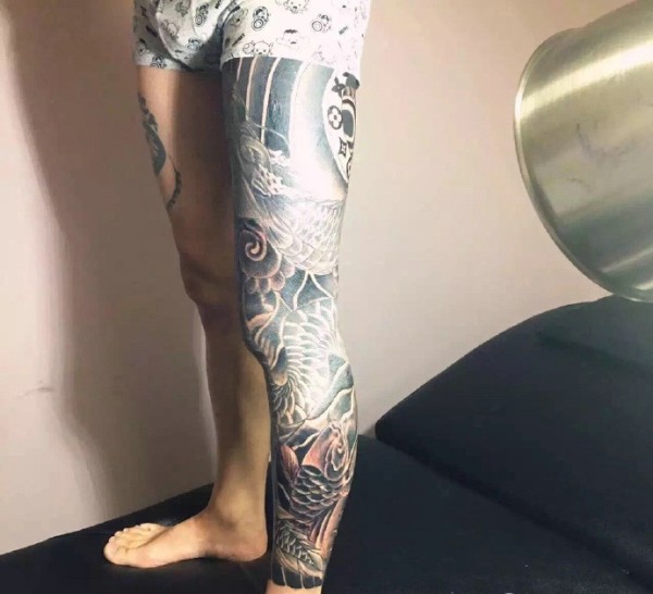 传统鲤鱼花小腿纹身_腿部纹身图案大全_纹身图吧