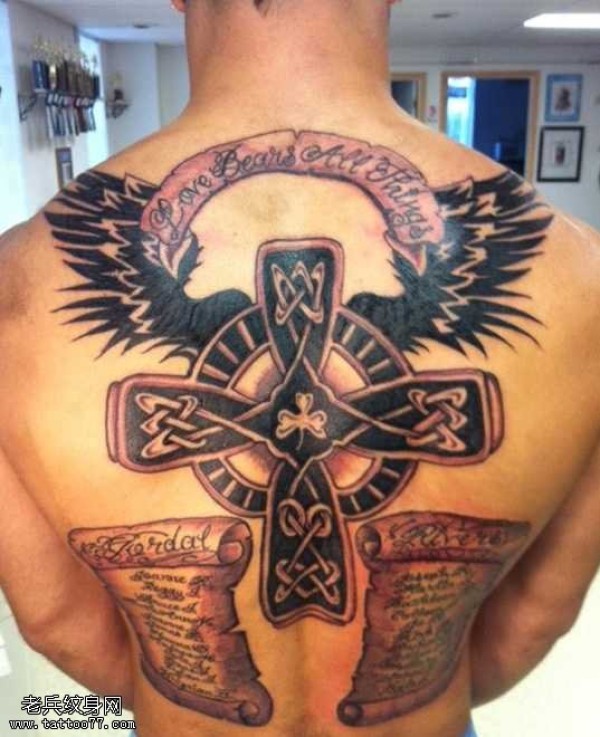 十字架插上梦想的翅膀纹身图案