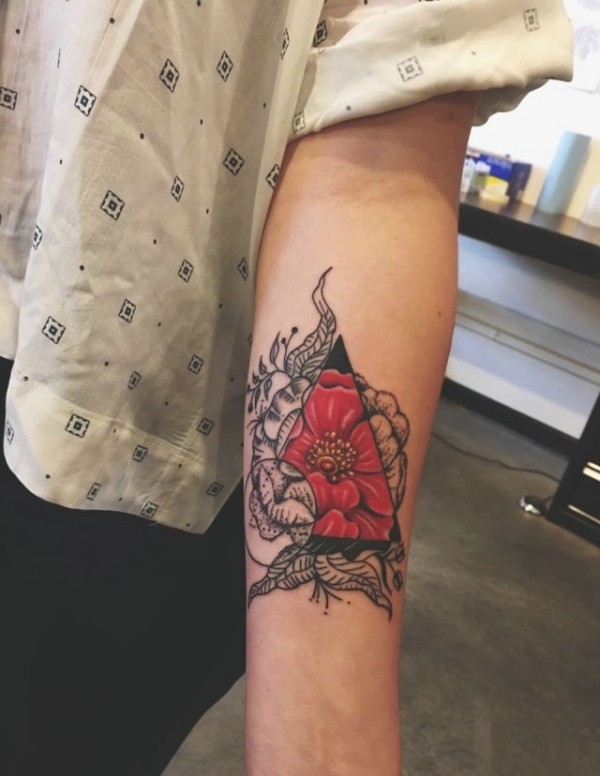 个性风趣的手臂几何花朵纹身图案