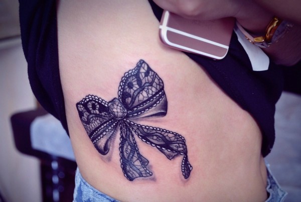 隐藏在侧腰部的3d蝴蝶结纹身图案