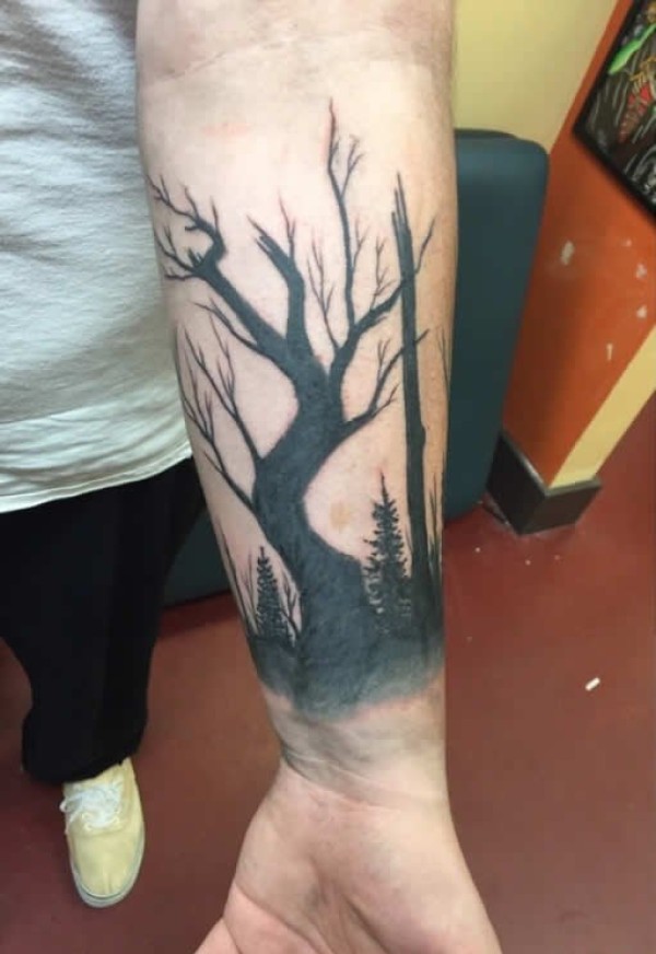 手臂上的黑色森林纹身