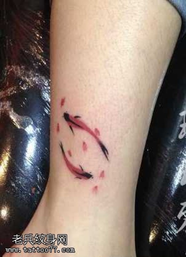 传统鲤鱼花小腿纹身_腿部纹身图案大全_纹身图吧