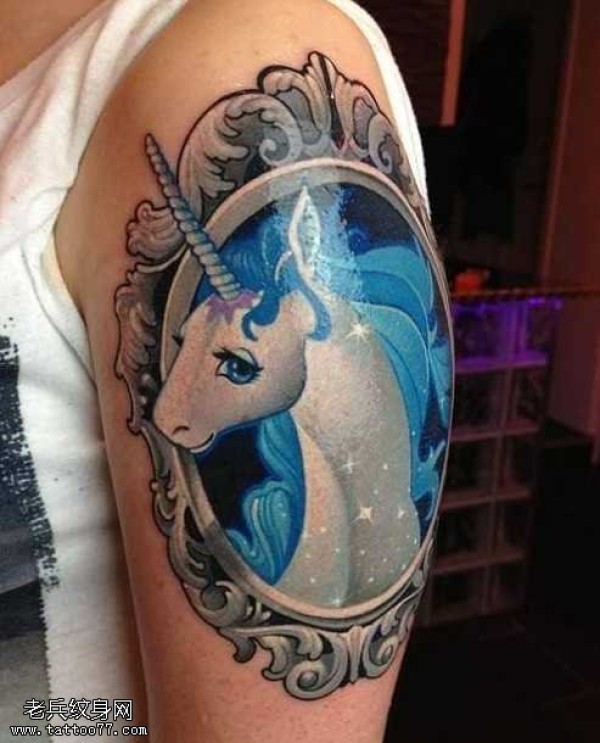 大臂非常忧郁独角兽纹身图案