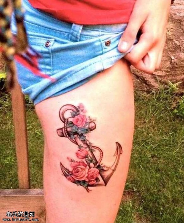 腿部船锚纹身图案