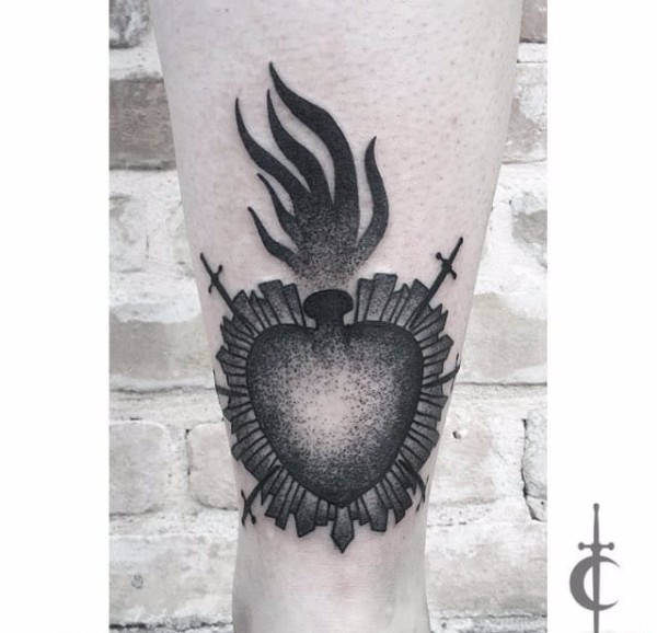 多款神圣的心之火焰的圣心纹身图案