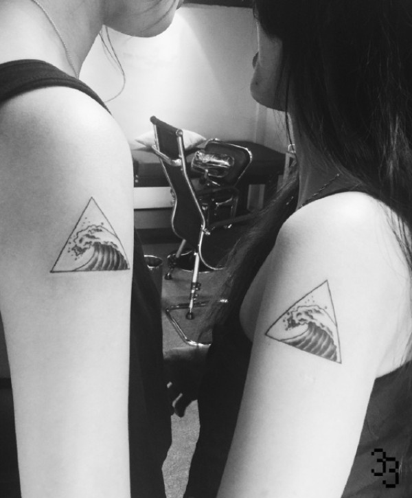 适合情侣的手腕点刺山脉海浪纹身图案