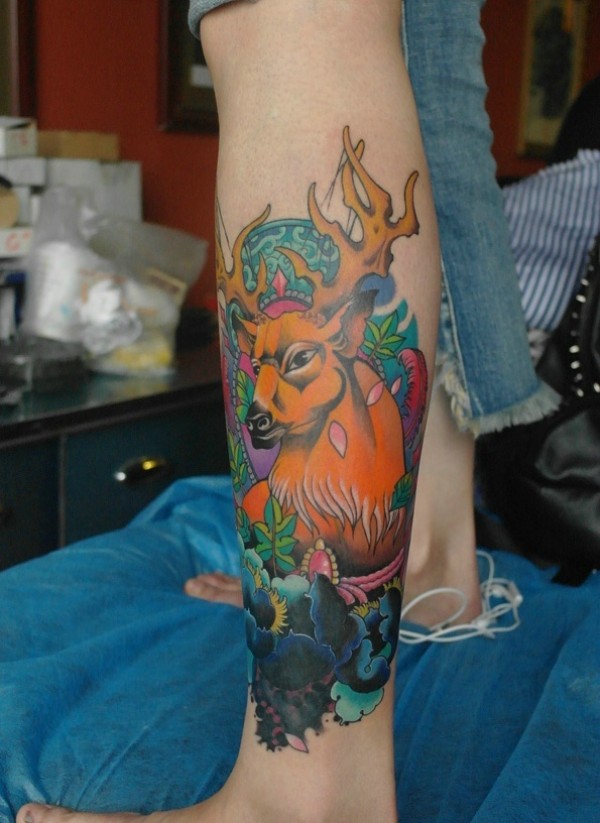 花腿纹身--一组大黑腿纹身图案作品欣赏