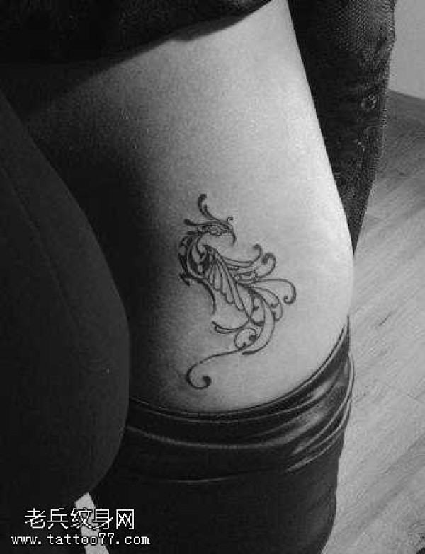 腰部精美的图腾凤凰纹身图案