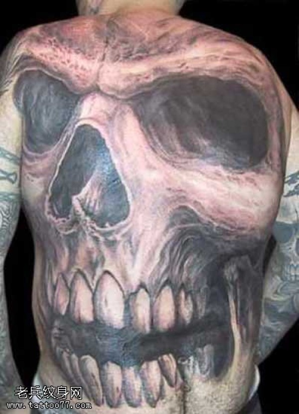 背部大气时尚骷髅纹身图案