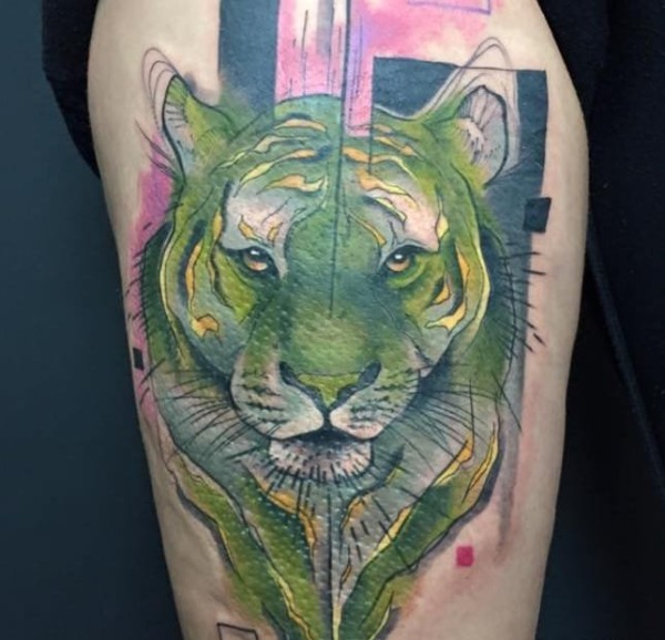 传统花腿纹身--18张传统风格的大花腿纹身图案作品