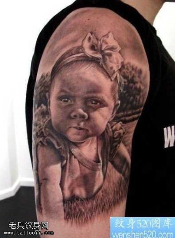 女性肩部肖像刺青_肖像纹身图案大全_纹身图吧