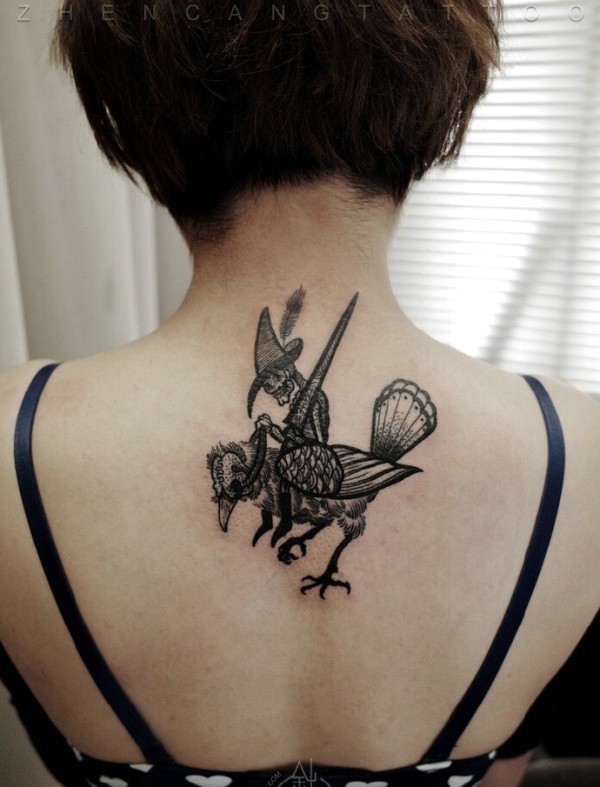 处在女生后背的骷髅骑士纹身刺青