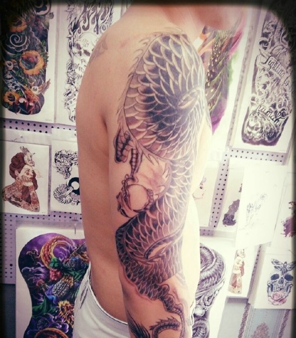 日式手彫刺青作品—半甲龙很感谢客户认可手彫刺青,手彫是日本纹身的手工雕刻技术,时间可以追溯到日本17世纪的江户时代。19世纪,手彫技术被日本黑帮挪用,被用作入会仪式,象征着从此就是江湖中人。在日式传统
