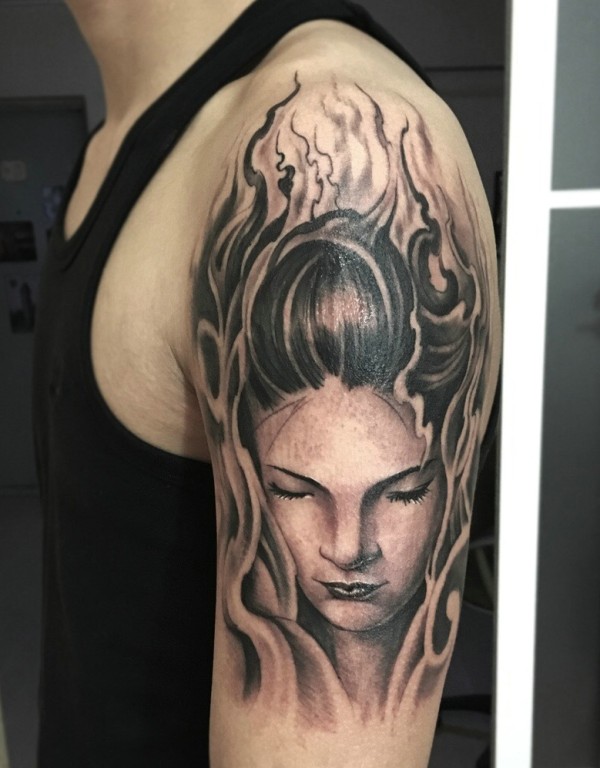 能面万媚纹身手稿_52张日式能剧面具纹身手稿图案素材欣赏