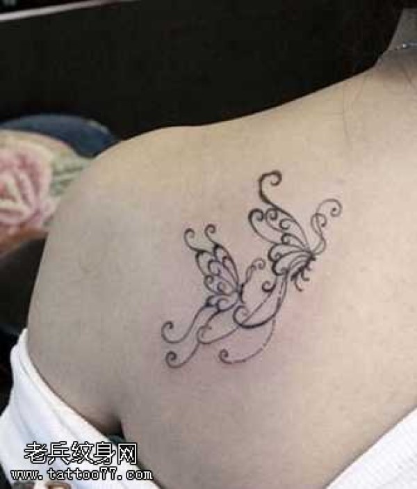 女生肩花纹身_15张女性双肩对称的肩花纹身图案作品图片